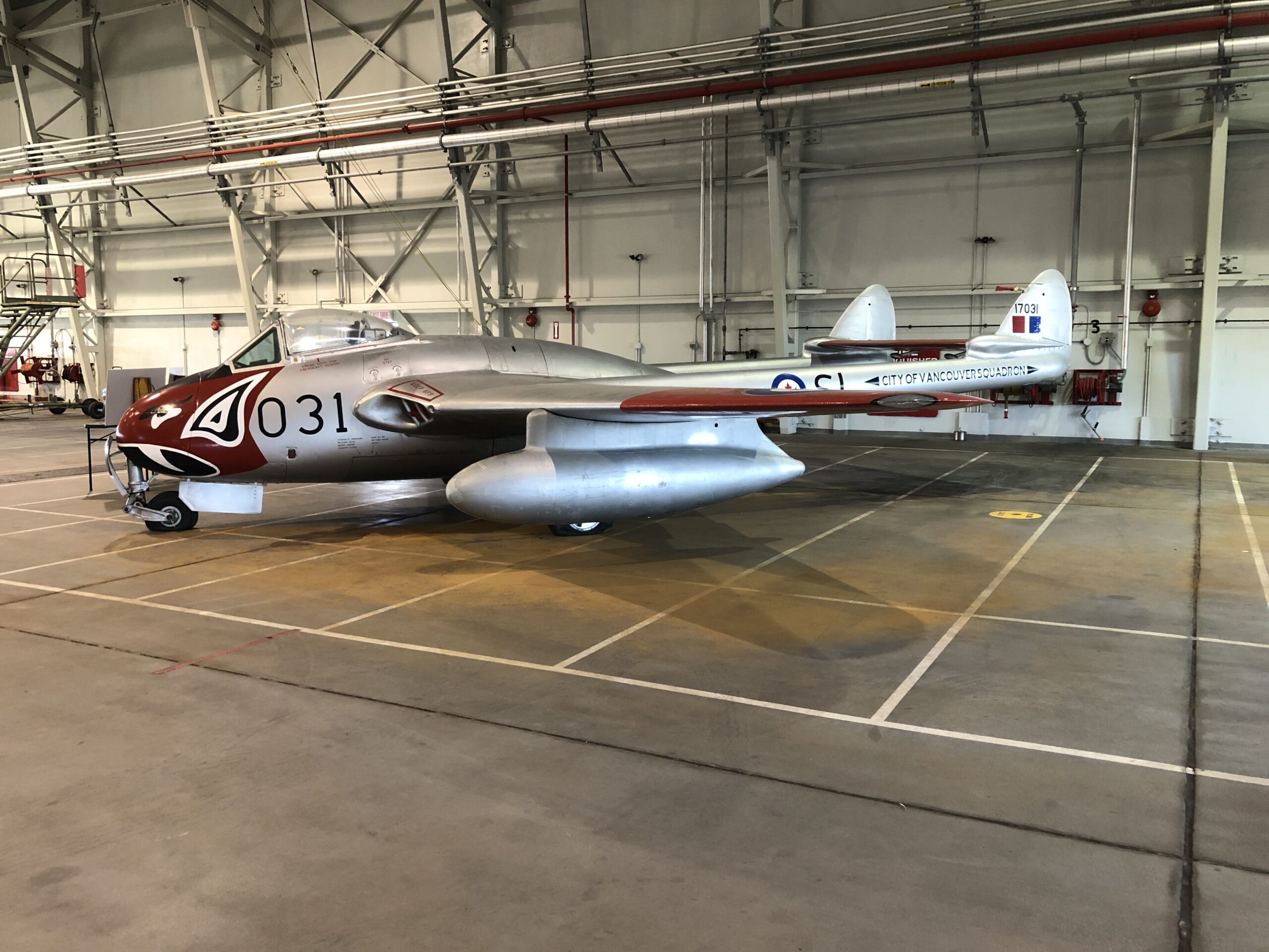 After spending many years flying in air shows, the Vampire 17031 was brought to Comox in 2000 still in flying condition. It was declared an artifact in 2001 and 19 Wing and Comox Valley Airforce Museum are working to bring it back into the public eye.