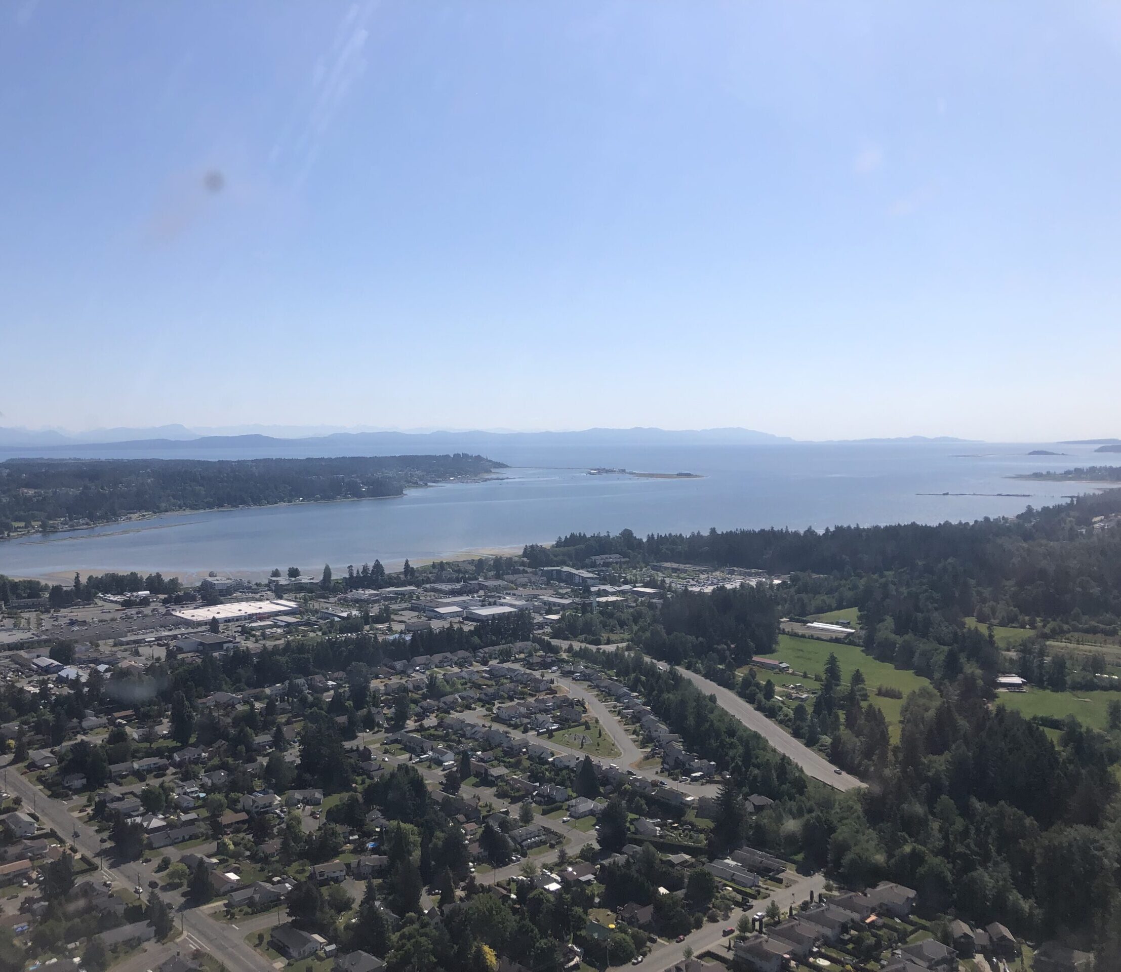 The views from above are breathtaking on a sunny spring day, with glistening blue water and green forests surrounding the area and Comox Lake looking more inviting than the water temperature suggests in late May.